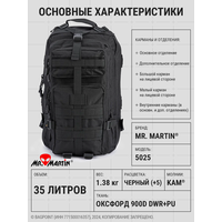 Mr. Martin 5025 рюкзак вместительный, его объем около 35 литров - это потолок для городских рюкзаков. Если вам нужен большой рюкзак для города, то 5025 для вас. Ну и конечно активный отдых: походы, охота, рыбалка, страйкбол и т. д. Все прошито на совесть: детально проработан каждый шов, каждый стежок. Внутри все прошито качественной подкладкой оливкового цвета. Фирменная фурнитура Mr. Martin. В целом - довольно функциональный и предельно надежный рюкзак по доступной цене, который прослужит долгие годы.
