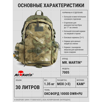 Рюкзак Mr. Martin® 7005 в расцветке "Мох". Объем около 30 литров. Одно основное вместительное отделение, 5 внешних карманов (1 спереди, 3 сбоку, 1 сзади), автономное отделение для ноутбука и документов. Одна из главных фишек данного рюкзака - убираемый внешний модуль для дополнительного крепления предметов снаружи (одежда, шлем и т. д.). Ткань влагозащищенный Oxford 1000D, молнии и пластиковая фурнитура от KAM®.