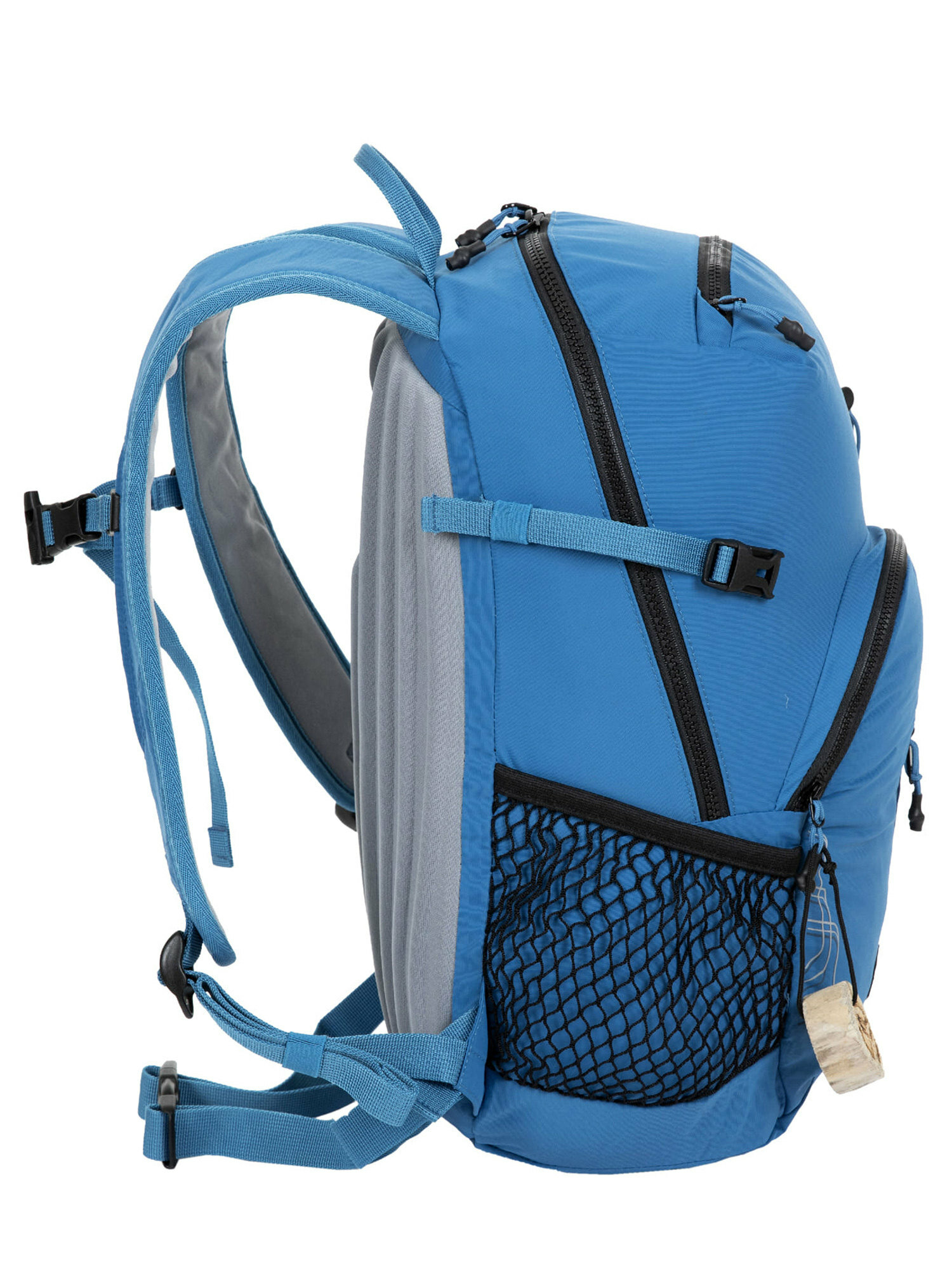 Ткань изготовлена из переработанного нейлона из рыболовных сетей, а боковая сетка для переноски бутылок сделана из настоящей рыболовной сети.