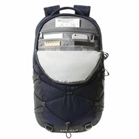 The North Face Borealis имеет просторное основное отделение, защищенное ползунком, которое вмещает книги, книги и документы формата А4, дополнительное оборудование и т. д. Со стороны спины находится отдельное отделение, предназначенное для безопасной транспортировки ноутбука 13", которое может служить карманом для мехов. Расположенный спереди большой карман оснащен органайзером для размещения необходимых аксессуаров, канцелярских принадлежностей, телефона, органайзера, планшета и т. д. Спереди также есть небольшой мягкий карман на молнии и банджи-шнур, позволяющий использовать дополнительные аксессуары, например, куртку, велосипедный шлем. По бокам рюкзака расположены два кармана с элементами из эластичной ткани, предназначенные для бутылки с водой и небольших аксессуаров. В нижней части рюкзака есть ремни, используемые для ухода за дополнительными аксессуарами. Несущая система FLEXVENT™ благодаря анатомически сформированным ремням безопасности и мягкой мягкой задней части Airmesh с дополнительными вентиляционными каналами обеспечивает комфорт даже при длительном использовании.