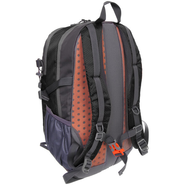 рюкзак имеет несколько отделений, включая одно большое основное отделение, два боковых кармана с сетчатой вставкой и карман на молнии на передней части, рюкзак имеет регулируемые лямки, на лицевой стороне рюкзака есть надпись 'COUNTERFLOW', рюкзак выполнен из синтетических материалов.