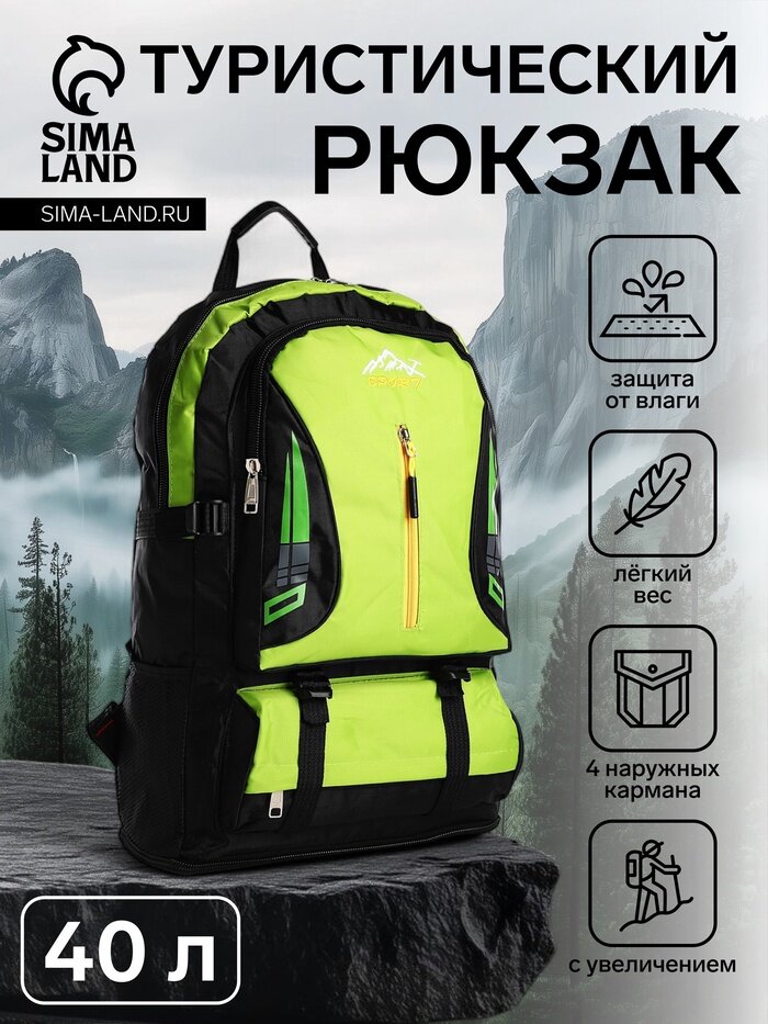 Рюкзак туристический, 40 литров, с увеличением, с карманами, Mountains, зелёный: сравнение цен, характеристики, фото, актуальное наличие и цены.