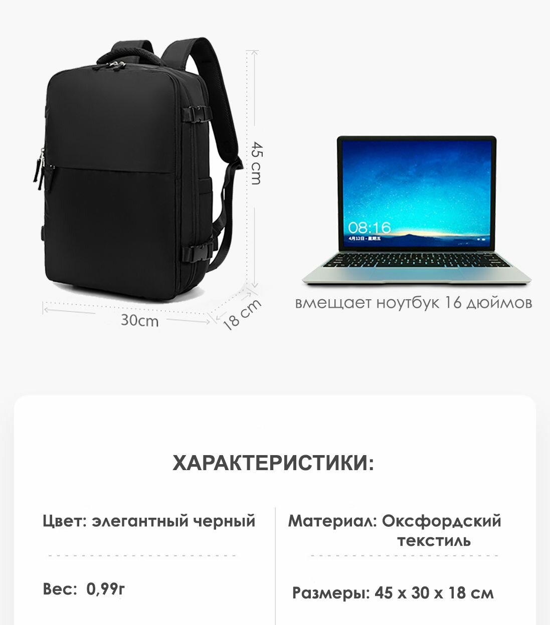 Этот Рюкзак чемодан в размере Cabin Size отлично подходит для путешествий. Объемный и вместительный. С ним удобно отправиться на работу, на учебу, в путешествие, в самолет поезд / машину да куда угодно!