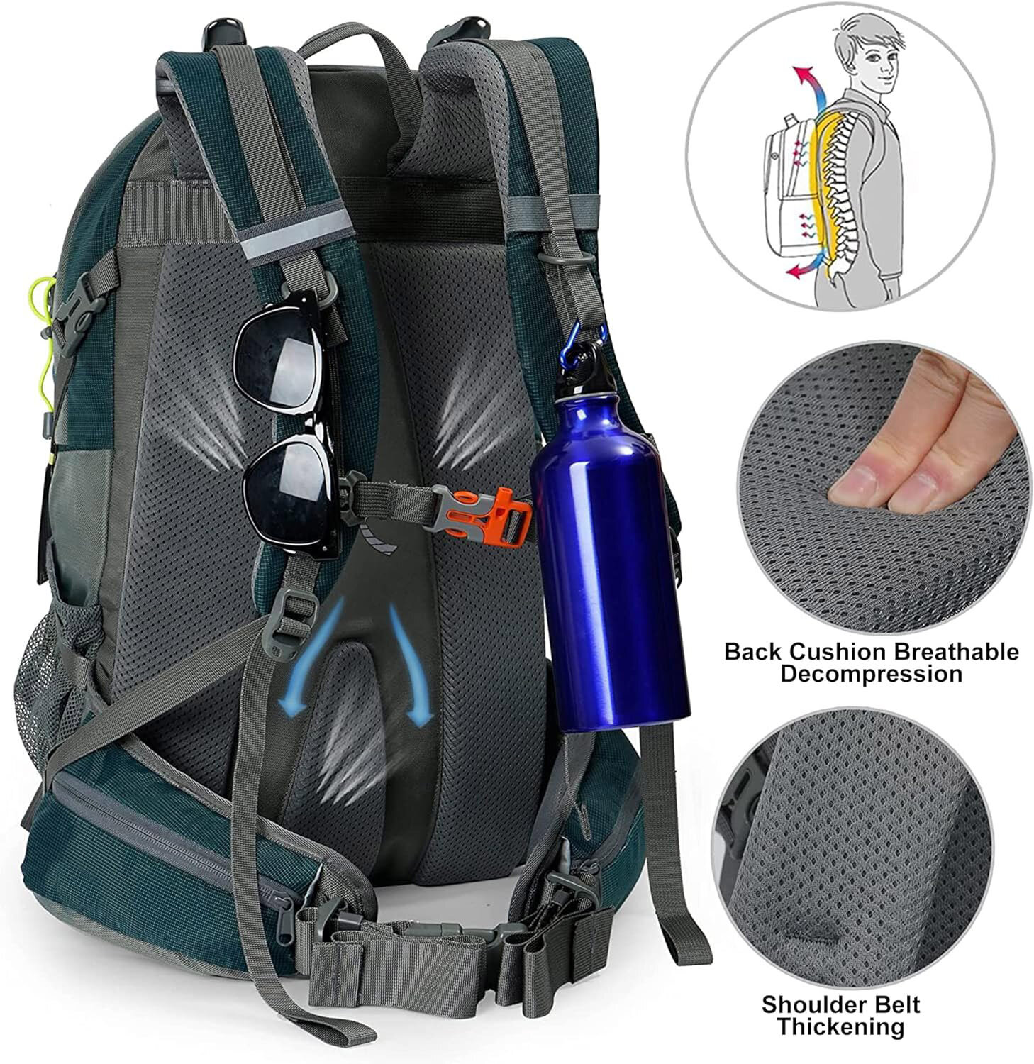 Функциональный рюкзак для походов выходного дня или поездок. Чехол от дождя в комплекте. Чехол от дождя Поясной ремень Размеры 31х20х54 см Объем 40 л Вес: 1,05 кг