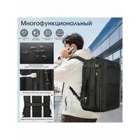 Рюкзак мужской/женский кожаный городской дорожный Bopai вместительный 27л, для ноутбука 15.6", водонепроницаемый, с USB зарядкой, взрослый/подростковый, черный