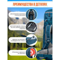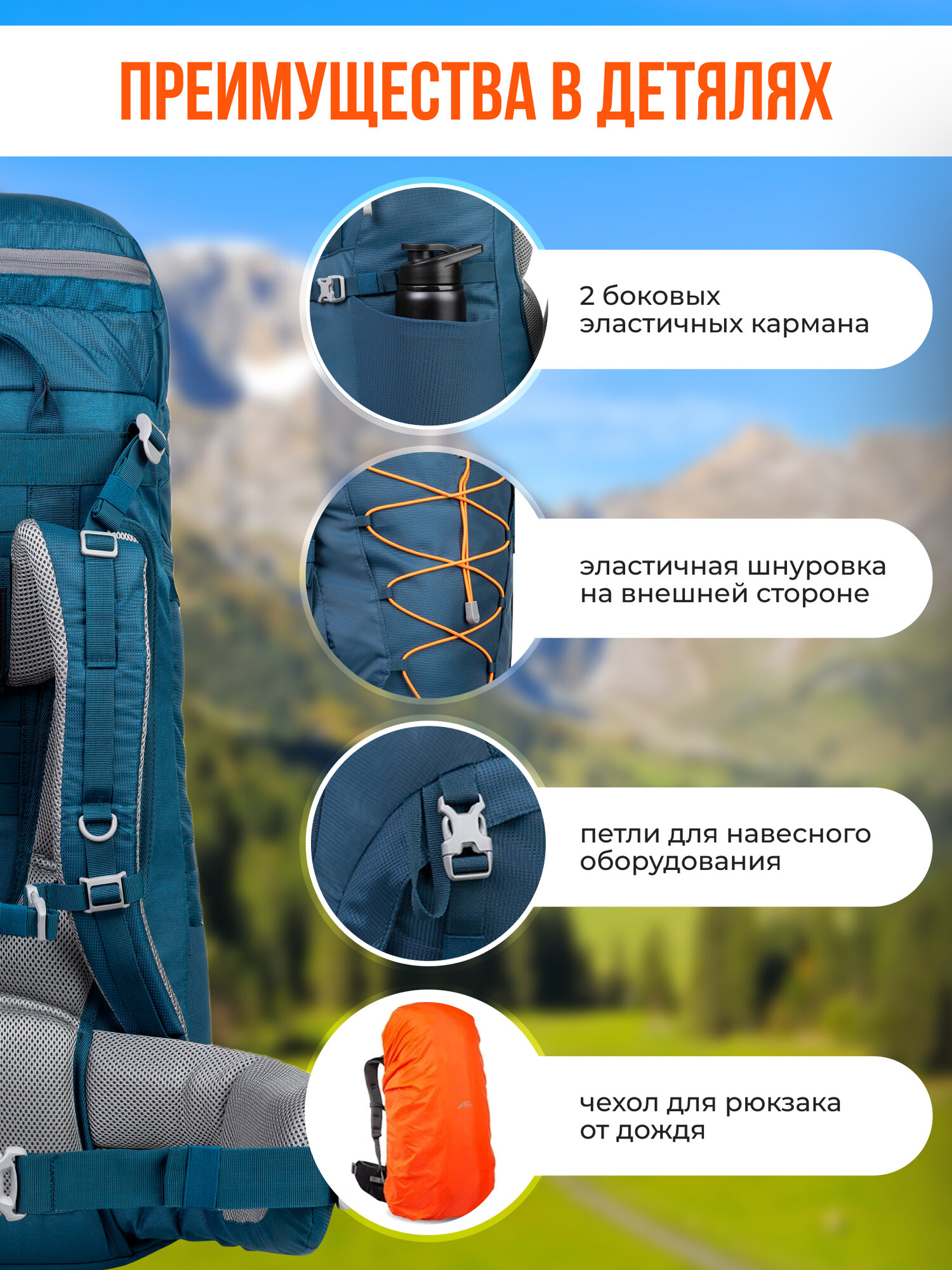 Туристический рюкзак TREK PLANET "KASHMIR 60", объемом 60 литров, будет надежным компаньоном в пеших и горных походах средней продолжительности и путешествиях. Анатомическая вентилируемая спина с системой регулировки позволяет отрегулировать посадку рюкзака в зависимости от роста человека. Удобная регулировка поясного ремня и лямок. Эргономичные лямки, нагрудный ремень и пояс обеспечивают распределение веса и хорошую стабилизацию рюкзака на спине. Эластичная шнуровка на фронтальной панели может служить для переноски вещей таких как ветровка. Также эти вещи можно закрепить на ней для просушки. Внешний и внутренний карманы на молнии в верхнем клапане рюкзака. Вместительный карман на поясе с удобным входом позволяет разместить фотокамеру, телефон и другие вещи первой необходимости. Дополнительный вход в нижнем отделе позволяет быстро добраться до нужных вещей. Предусмотрено крепление для питьевой системы с внешним выходом. Наличие внешней навески позволяет переносить дополнительное снаряжение. Объем рюкзака регулируется вертикальными и горизонтальными стропами. Рюкзак сделан из комбинации материалов Ripstop/Полиэстер с влагоотталкивающими свойствами.
