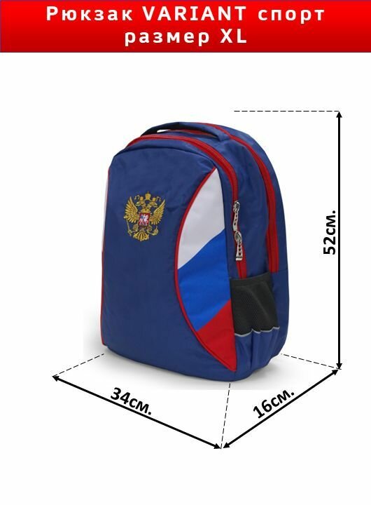 Рюкзак большой (размер XL), его размеры – 52 см длина, 34 см ширина, 16 см. глубина.