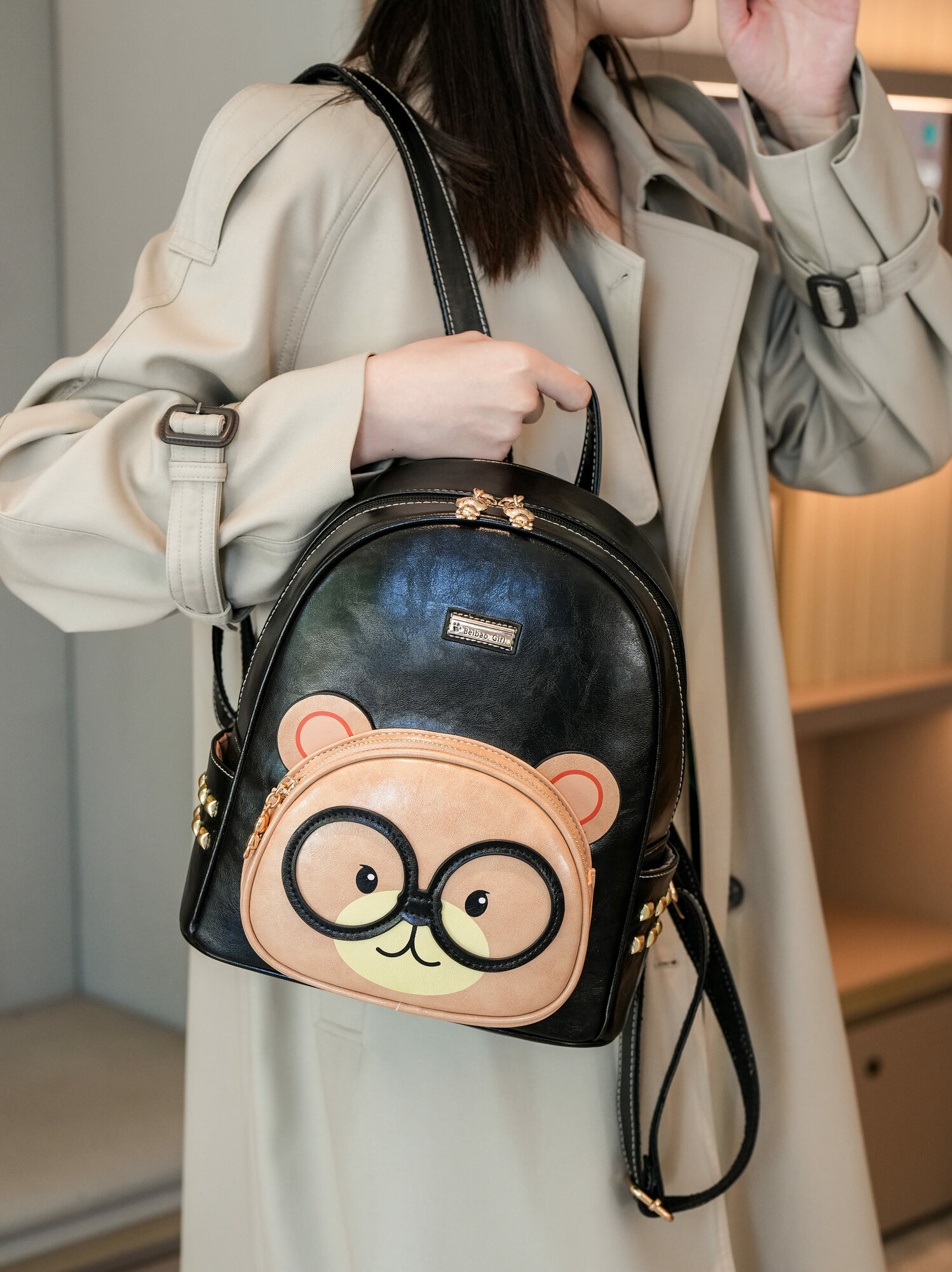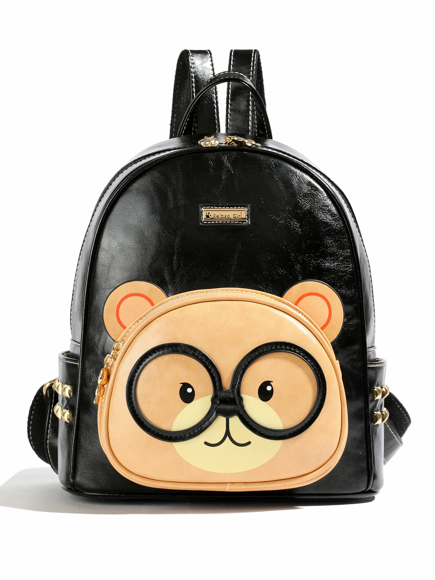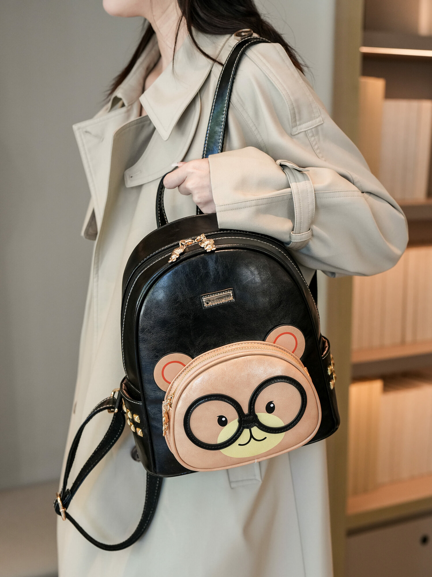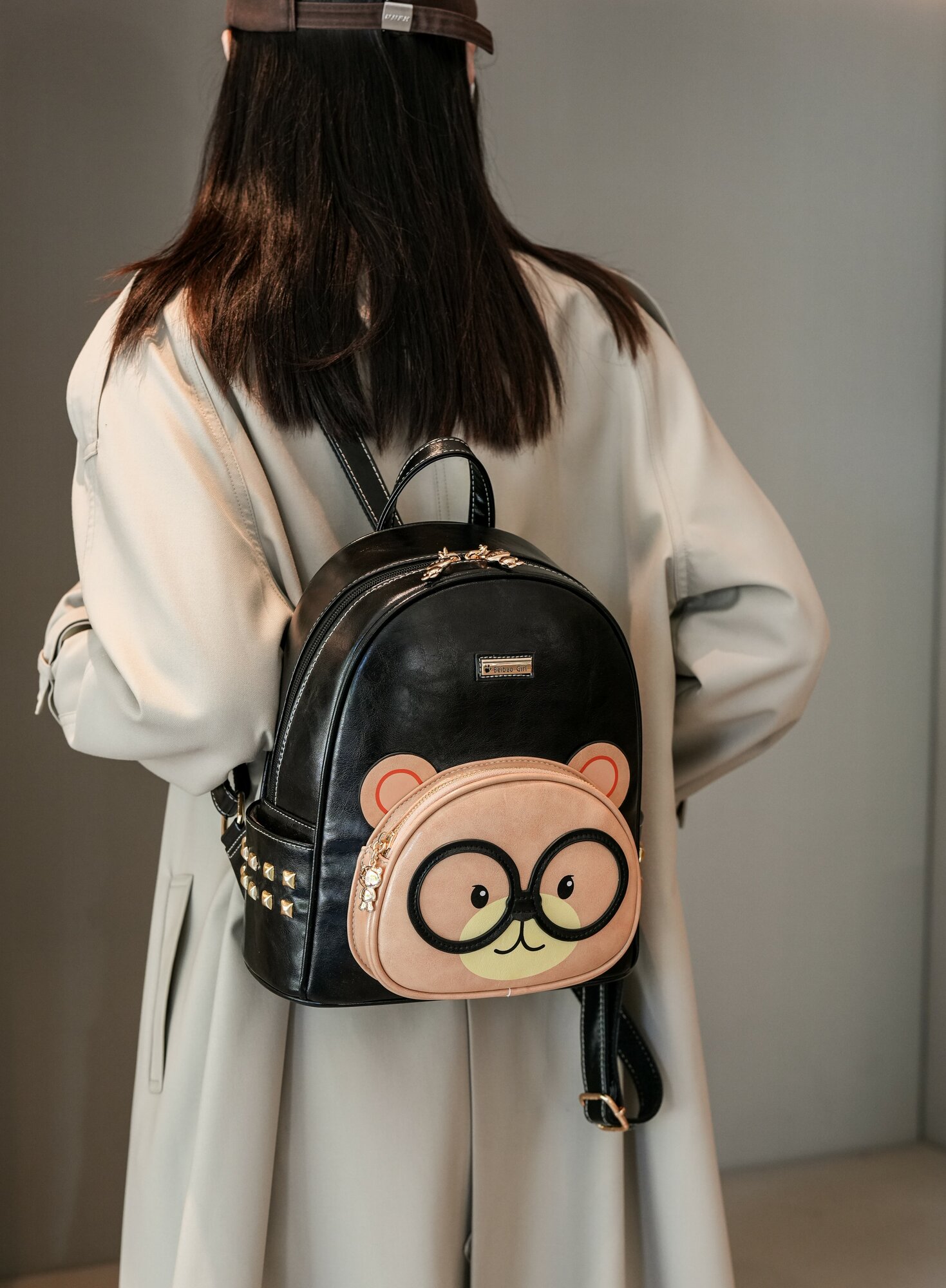 Стильный и практичный рюкзак Beibaobao выполнен из гладкой экокожи черного цвета, что придает ему элегантный и современный вид.