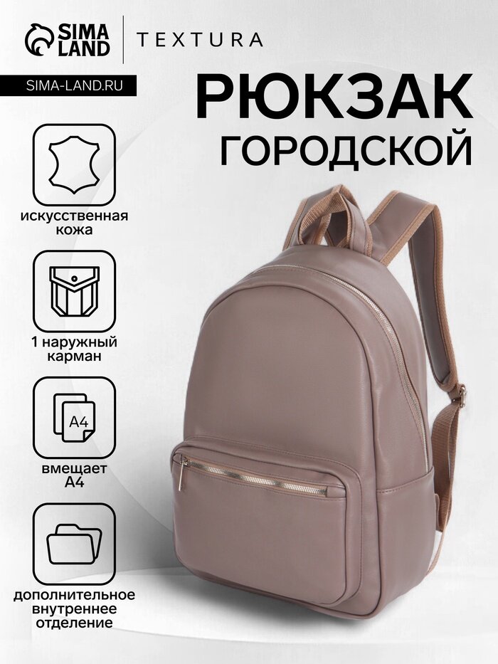 Рюкзак женский городской TEXTURA на молнии, с карманом, размер 29×14×38 см, серый: сравнение цен, характеристики, фото, актуальное наличие и цены.