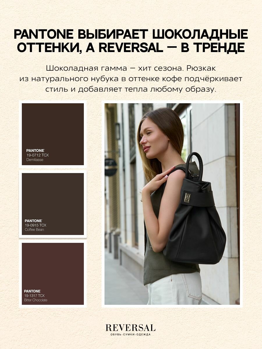 Купить Рюкзак женский из натурального нубука темно-коричневый , Reversal , 9822R-2_Темно-коричневый-нубук с доставкой по всей России.