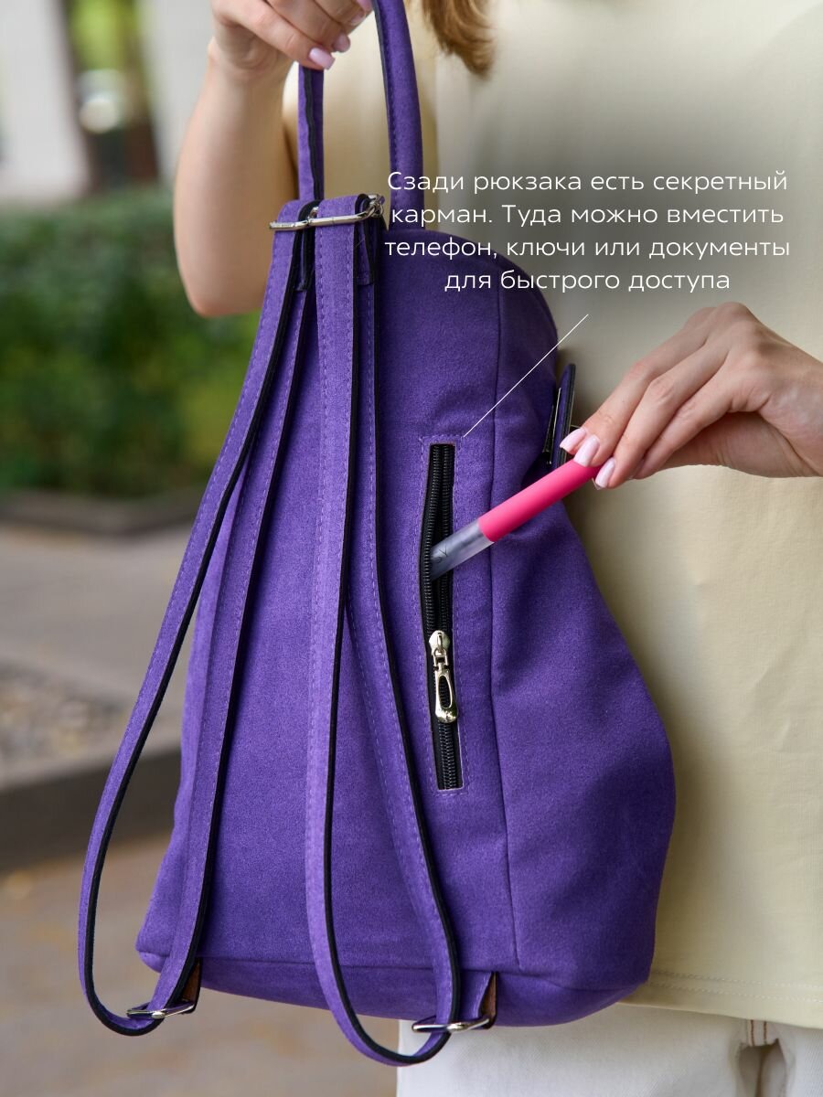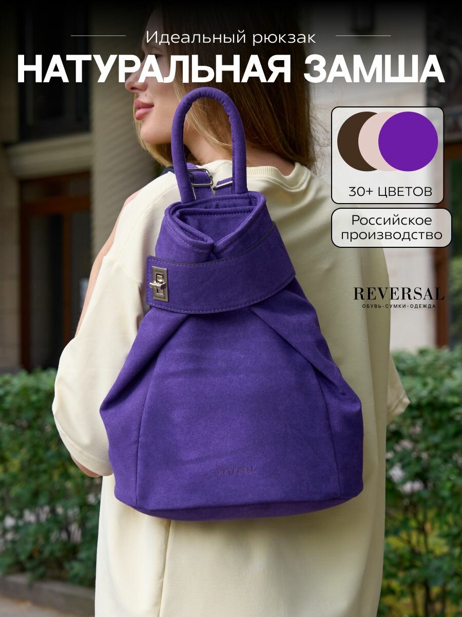 Купить Рюкзак женский из натуральной замши фиолетовый , Reversal , 9823R_Фиолетовый с доставкой по всей России.