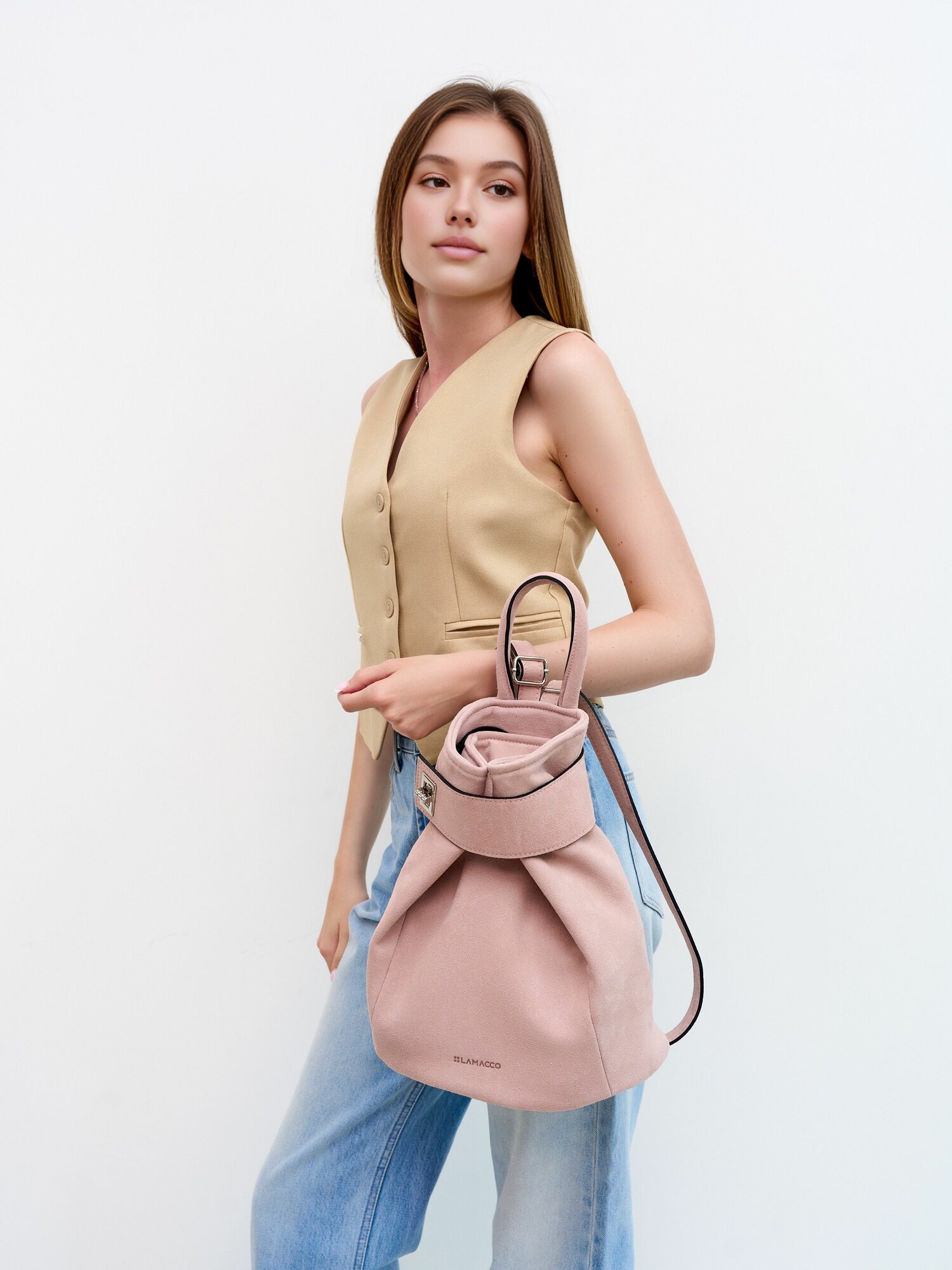 Мягкий, эластичный, лёгкий — этот рюкзак точно покорит вас с первого выхода. Мы сделали его из натуральной замши, чтобы он смотрелся дорого и носился долго. Внутри — подкладка и продуманная организация: основной отсек на молнии, карман на молнии и один открытый карман для мелочей. На спинке — скрытый карман на молнии, в который удобно убрать документы, ключи или помаду. Лямки регулируются под ваш рост, рюкзак комфортно садится на плечи и не давит. Благодаря своей мягкой структуре он подстраивается под содержимое, легко складывается и не занимает много места — идеальный спутник в поездке. Цвет нежно-розовый, деликатный и универсальный: носите с льняными костюмами, платьями-футлярами, денимом или оверсайз-блейзерами. Рюкзак женский замшевый дополнит как повседневный, так и романтичный образ. Это рюкзак трансформер женский — он легко вписывается в ритм города и меняется под ваш стиль. Женский рюкзак летний незаменим в жаркие дни, особенно когда не хочется носить тяжёлые сумки. Наш рюкзак из натуральной замши женский сочетает удобство и стиль — идеальное решение для лета. Городской рюкзак женский с мягкой формой идеально подходит для прогулок, встреч, шопинга и офиса. Такой рюкзак пинтерест можно встретить в подборках модных образов — он точно будет в центре внимания. Рюкзак мешок женский особенно удобен: легко затягивается и фиксируется, при этом оставаясь стильным. Это удобный рюкзак женский, который не перегружает спину и при этом вмещает всё необходимое. Рюкзак женский розовый — акцент, который освежит даже самый базовый образ. Это вместительный рюкзак, который легко удержит бутылку с водой, планшет, блокнот, косметичку и кошелёк. Благодаря мягкой замше, мягкий рюкзак приятно держать в руках. Рюкзак женский модный 2025 уже здесь — стильный, продуманный и абсолютно универсальный. Чтобы сохранить его вид надолго, рекомендуем сухую чистку мягкой щёткой или пенкой для замши, а также использовать водоотталкивающий спрей перед выходом.