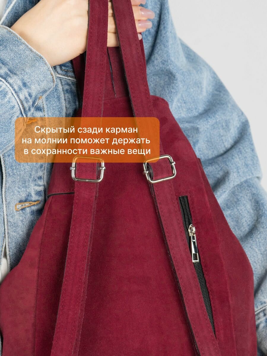 Купить Рюкзак женский натуральная замша средний бордовый , Lamacco , 9823L_Винный с доставкой по всей России.