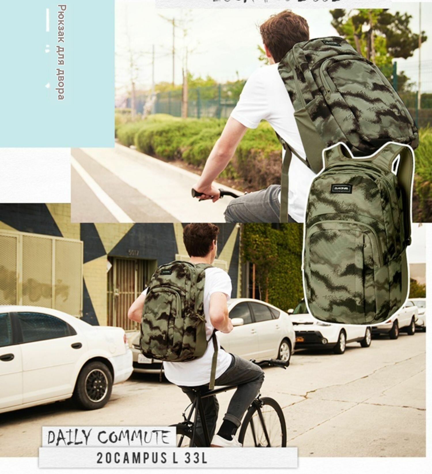 Обновленный Dakine Campus L 33 для города, школы или института. Эта модель стала совершеннее во всем. Новая форма рюкзака позволила размещать в нем ноутбук размером до 16 дюймов. Большой карман термос теперь может вместить в себя лоток с едой. Карман органайзер стал значительно больше. И самое важное, в рюкзак Campus мы получили более плотную спинку и защищенное, мягкое дно. Добавились женские цвета, чтобы заменить снятый с производства Dakine Prom 33. Анатомические лямки Регулируемый нагрудный ремень Защищенное отделение для ноутбука размером до 16 дюймов Карман органайзер Флисовый карман для очков Карман термос Сетчатые боковые карманы Усиленное мягкое дноОбъем: 33 литровРазмеры: 53 x 33 x 20 смКрасивые продукты