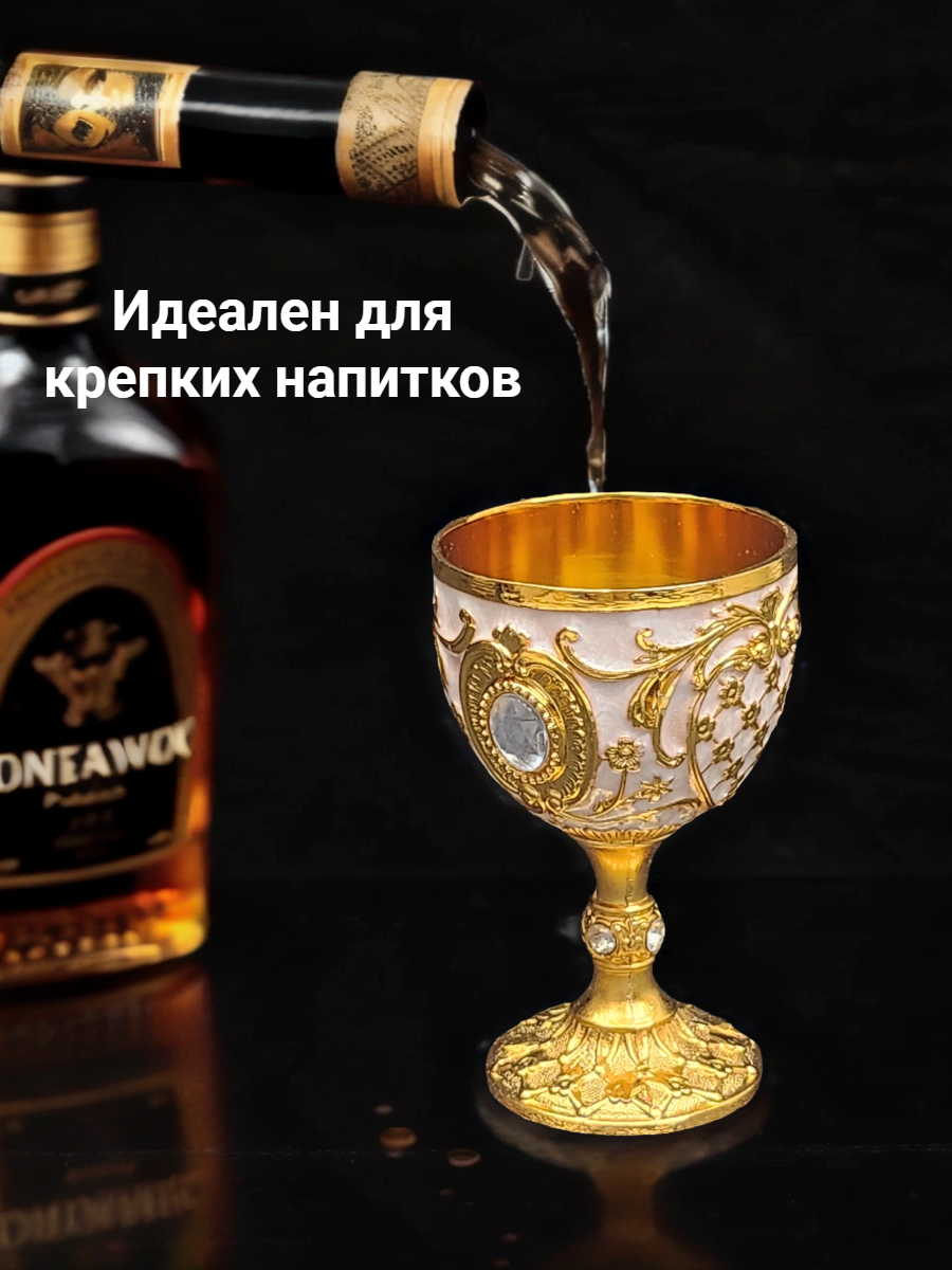 Представляем тебе наши изысканные рюмки для водки – идеальный подарок для особых моментов и специальных событий. Наш набор рюмок - это не только функциональное, но и элегантное дополнение для вечеринки, свадьбы или подарок для мужчины на день рождения или другой особый день. Набор рюмок включает в себя стильные и изящные стопки для водки. Предлагаемая вместимость 35 мл отлично подходит для сервировки водки или других алкогольных напитков, позволяя наслаждаться ароматом и вкусом изысканного напитка. Наши рюмки выделяются уникальным винтажным дизайном выполненным из металла и украшен стразами, придавая им особую привлекательность. Рюмки на ножках удобно держать в руке. Наш набор рюмок также может стать прекрасным подарком на свадьбу или другое специальное событие. Значимый подарок, который будет радовать и восхищать. Выбери наши стопки на ножке, и ты получишь великолепный комплект, который добавит изысканности и элегантности в любой праздничный момент. Позволь им подчеркнуть особый характер и значимость каждого тоста, а также создать неповторимую атмосферу праздника и памятных моментов.
