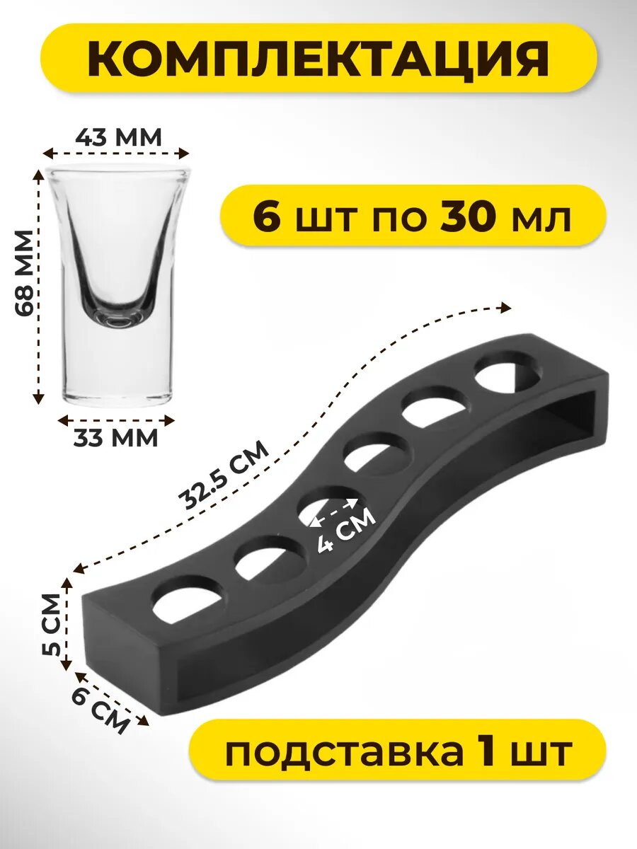 Купить Рюмки для водки с подставкой набор стопок 30мл 6шт + шотница с доставкой по всей России.