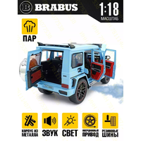 С имитацией выхлопа Мерседес Гелик BRABUS 28 см инерция, открыв. двери, капот и багажник, складыв. зеркала, поворачиваются колеса, свет/звук, голубой