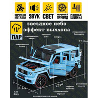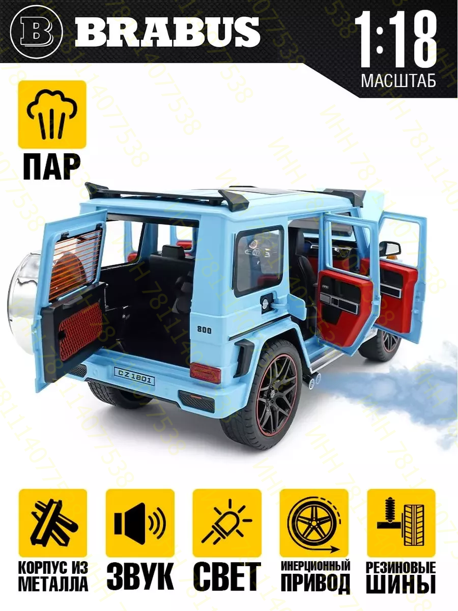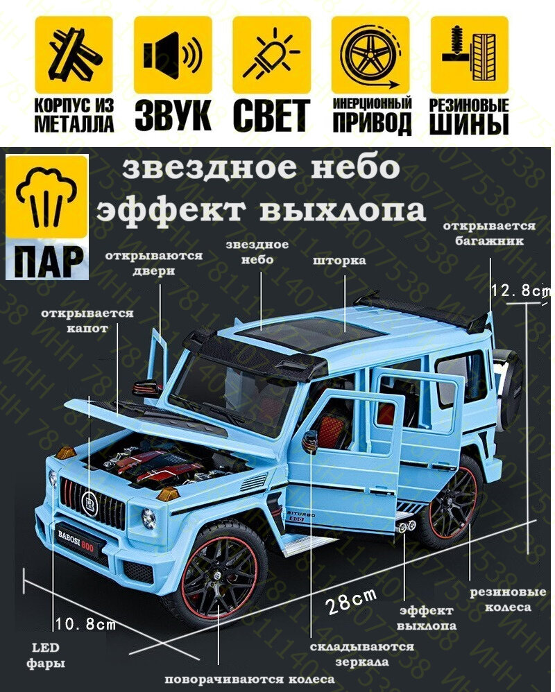 С имитацией выхлопа Мерседес Гелик BRABUS 28 см инерция, открыв. двери, капот и багажник, складыв. зеркала, поворачиваются колеса, свет/звук, голубой: сравнение цен, характеристики, фото, актуальное наличие и цены.