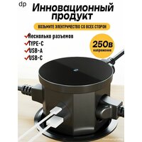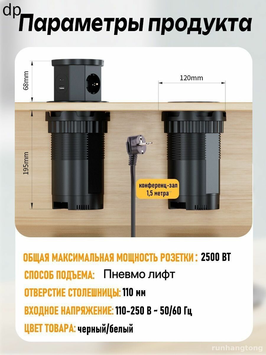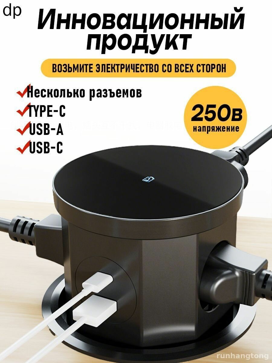 С выдвижным механизмом для столешницы, оснащенная беспроводной зарядкой 15 Вт, тремя розетками, портами USB и TypeC для быстрого питания, с кабелем 1.5 метра в черном цвете: сравнение цен, характеристики, фото, актуальное наличие и цены.
