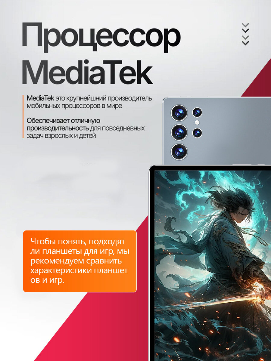 | Особенности | FM-тюнер, cлот для карты памяти, акселерометр, встроенный микрофон, гироскоп, детский планшет, компас, разъем для микрофона, сканер LiDAR |