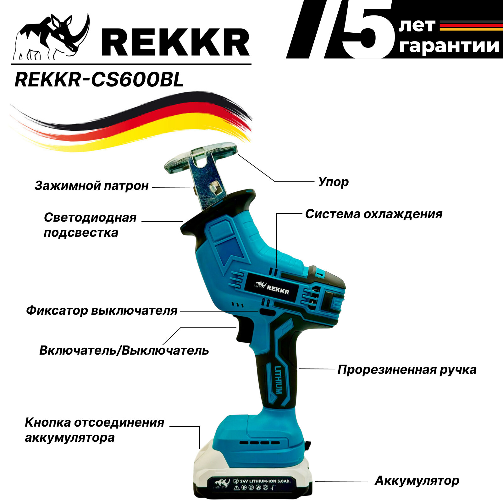 Сабельная пила аккумуляторная REKKR CS600BL, 600Вт, 2 аккумулятора 24В 3Ач, кейс, зарядка: сравнение цен, характеристики, фото, актуальное наличие и цены.