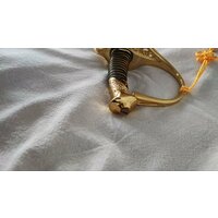 Данное изделие является сувенирной продукцией. Характеристики: Материал клинка сталь 440С Заточка отсутствует Материал ножен дерево, обтянутое кожазамом Материал рукояти пластик и металл Все декоративные элементы металл Пр-во Китай
