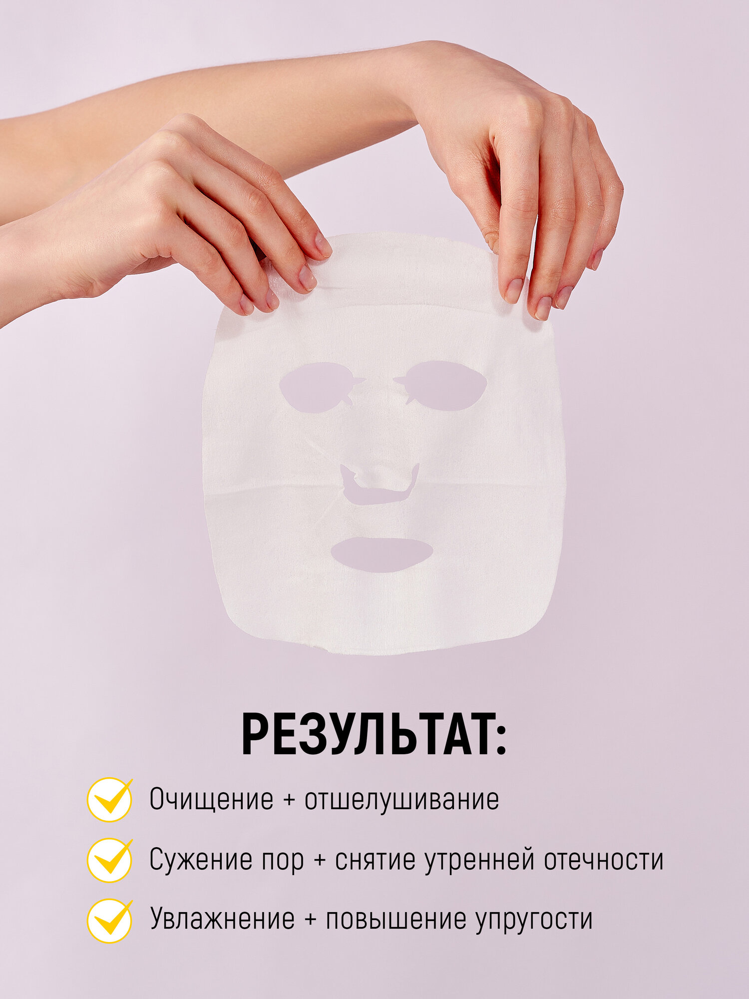 Вытащить маску из упаковки и наложить на лицо. Через 60 секунд снять маску, протереть ей лицо, шею и зону декольте и можно приступать к макияжу. Способ хранения: хранить в недоступном для детей, темном сухом месте. Плотно закрывайте упаковку во избежание высыхания средства. Для усиления противоотечного действия храните маску в холодильнике.
