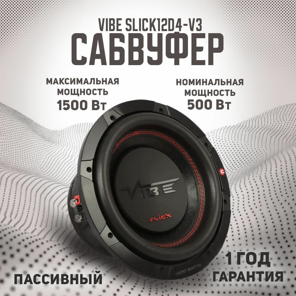 Сабвуфер автомобильный VIBE SLICK12D4-V3, типоразмер 30 см, 4 Ом, 1 полоса, 400-1200 Вт, пассивный: сравнение цен, характеристики, фото, актуальное наличие и цены.