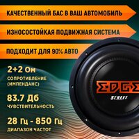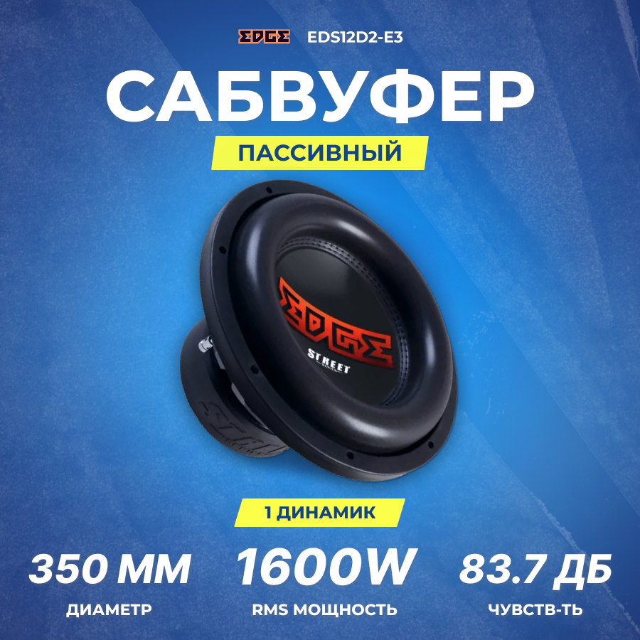 Сабвуфер автомобильный EDGE EDS12D2-E3, 30 см (12 дюйм), 2000-3200 Вт, 2 Ом, пассивный: сравнение цен, характеристики, фото, актуальное наличие и цены.
