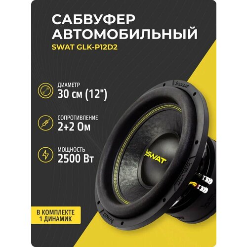 SWAT GLK-P12D2 – это универсальный 12-дюймовый сабвуфер из серии GLOCK, который отличается доступной ценой, отличным качеством сборки и мощным звучанием. Он способен обеспечить глубокий бас в стиле рэп и R&B или быстрый панч в EDM и роке, что делает его отличным выбором для повседневного использования. Компактная монтажная глубина (167 мм) позволяет легко установить сабвуфер в корпус, не занимая много места в багажнике. В 2025 году обновленная версия получила новые звуковые катушки, произведенные в России, а также улучшенную систему охлаждения, что увеличивает надежность и долговечность динамика.