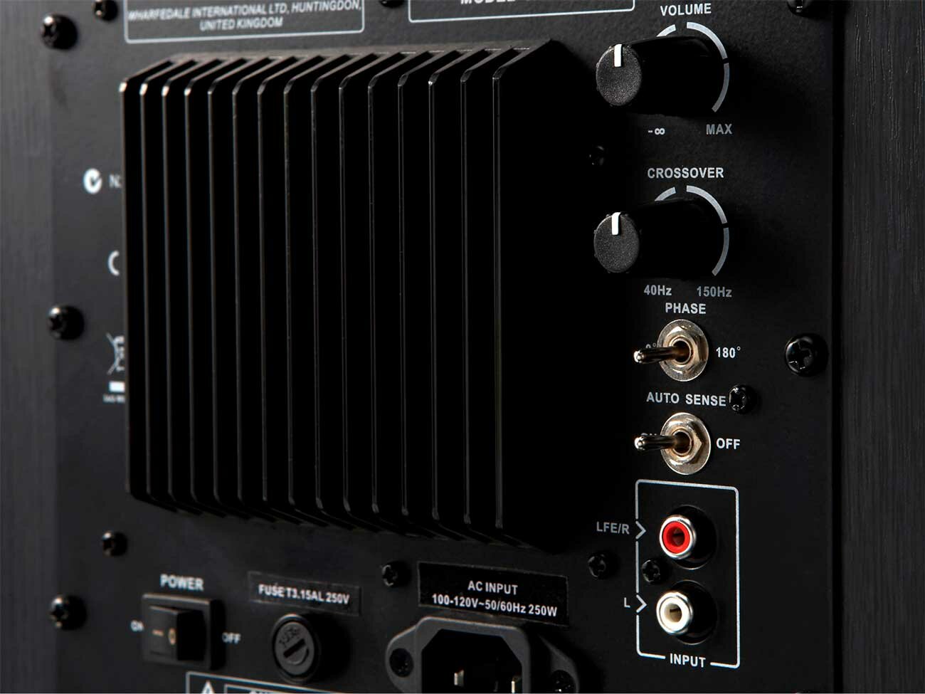 Для обеспечения безупречного качества звучания в различных окружающих условиях сабы Wharfedale WH-D8 оснащаются встроенным аудиофильским усилителем, который обеспечивает выходную мощность 70/150 Вт, линейность и подлинно сбалансированное воспроизведение басовых звуков. Также вуферы имеют надёжный кроссовер из высококачественных компонентов, срез которого плавно изменяется с помощью специального поворотного регулятора. Также к настройкам основных параметров звучания относится уровень и абсолютная фаза сигналов. Для подключения к источникам аудиосигналов и другим акустическим системам сабы Wharfedale WH-D8 имеют линейные разъёмы RCA.
