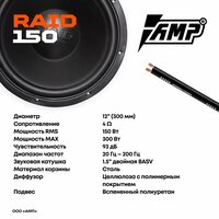 Купить Сабвуферный динамик AMP RAID 150 124 / Сабвуфер автомобильный / с доставкой по всей России.