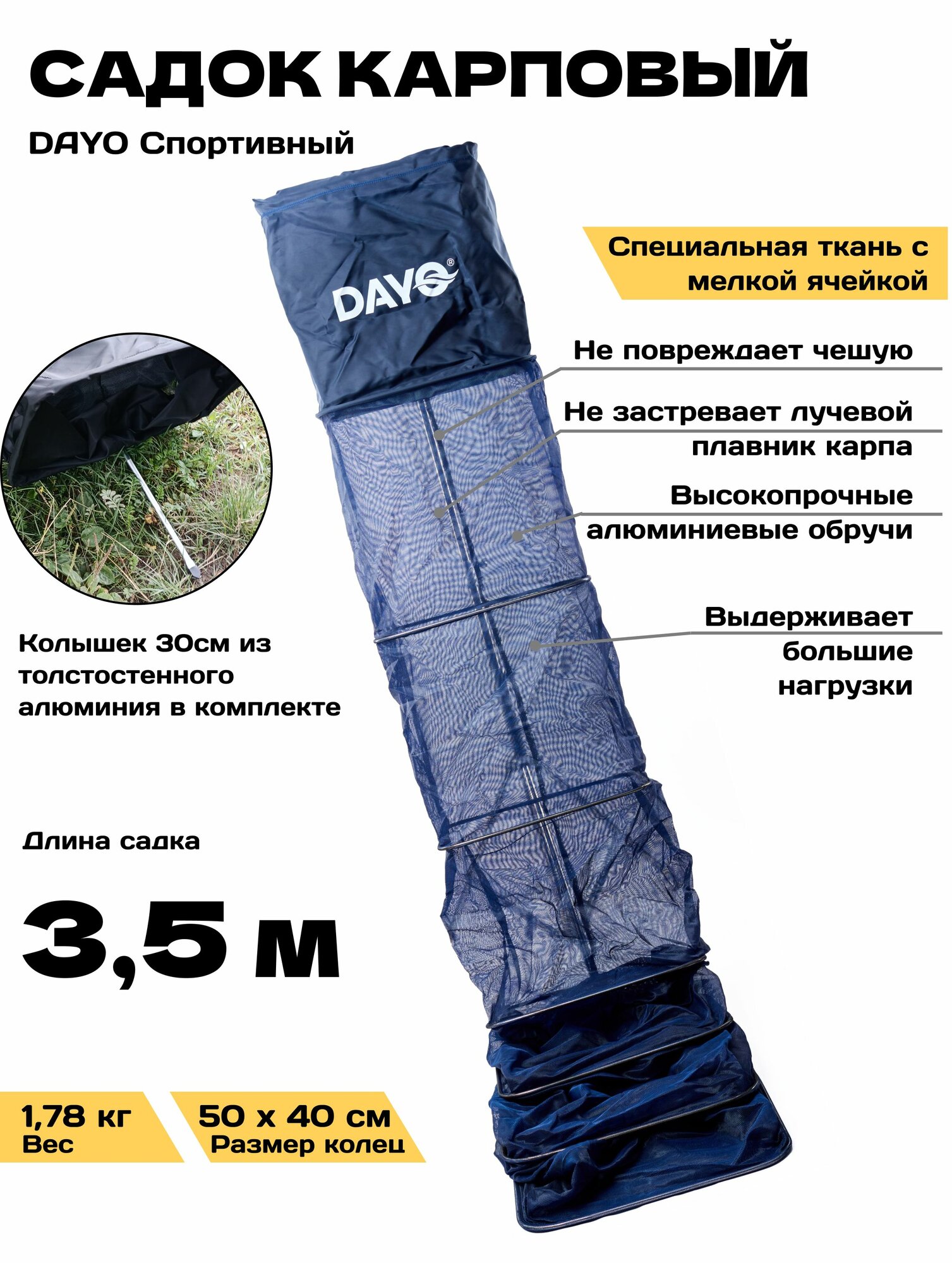 Садок квадратный рыболовный карповый спортивный DAYO 3.5 метра темно-синий: сравнение цен, характеристики, фото, актуальное наличие и цены.