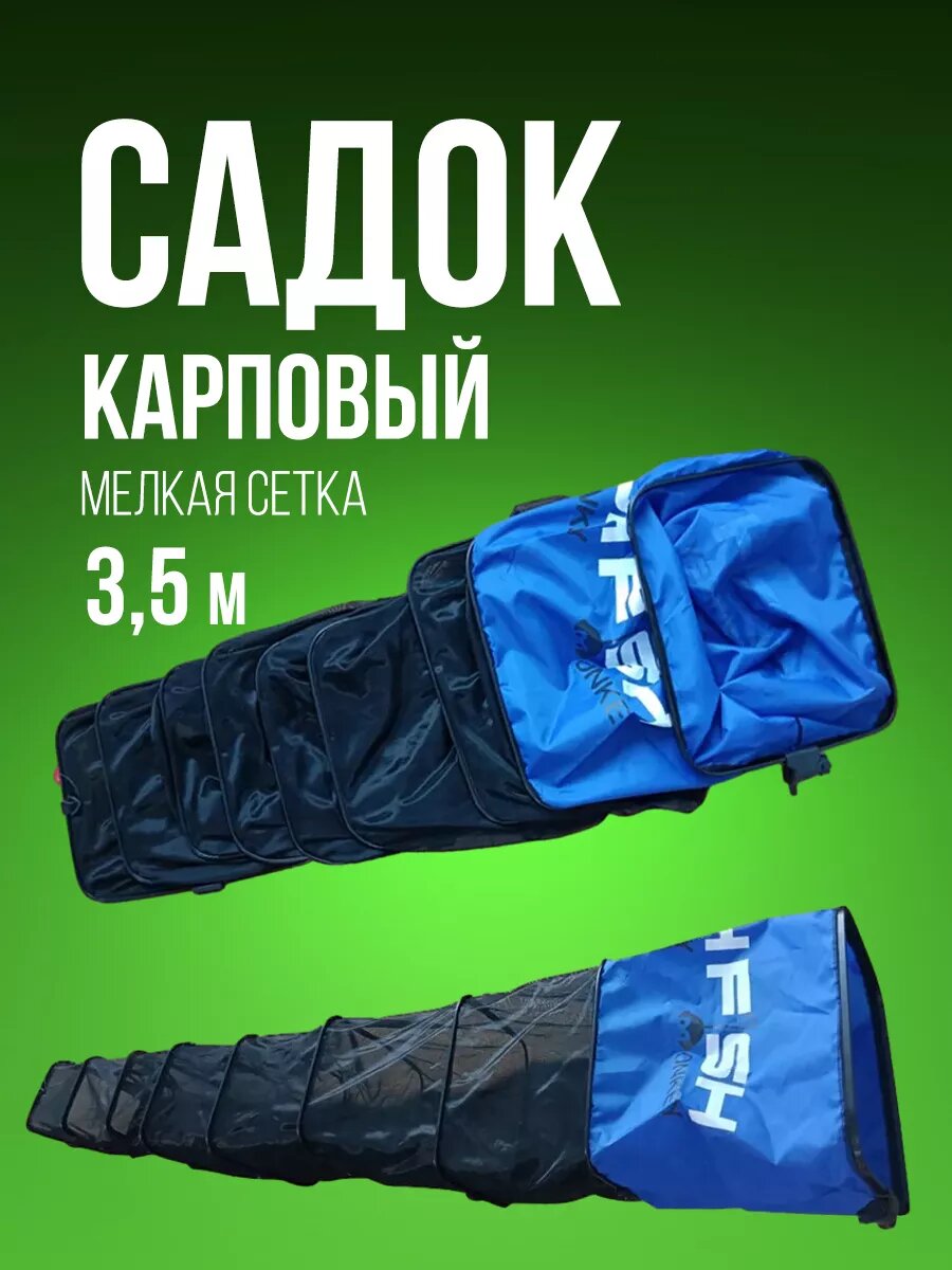 Садок карповый для рыбы быстросохнущий прорезиненный, сочетающий в себе функциональность, удобство и малый вес. Благодаря прямоугольному сечению 50x40 см, он не катится по дну под действием бокового течения, поэтому меньше сносится. Обручи каркаса выполнены из легкого и прочного пластика и находятся поверх нейлоновой мелкоячеистой сетки, что предотвращает ее быстрое изнашивание, особенно во время рыбалок на водоемах с твердым или покрытым ракушками, камнями дном. Между первым и вторым обручем размещена вставка из прочного синтетического материала. Сетка отличается долговечностью и прочностью, быстро сохнет и практически не впитывает запахи. Садок карповый оснащен вращающимся креплением со стандартным винтом, позволяющим установить его на стойке под любым удобным углом. Модель данного карпового рыболовного садка доступна в длине 3,5 метра. Садки карповые рыболовные от производителя Carp Fish отличаются отличным качеством по доступной цене! Подходят для карповой, фидерной, спортивной и другой рыбалки. Садок прорезиненный для рыбы большой, квадратный карповый. За счет своей прямоуголной формы устойчив на любом дне с сильным течением. Благодаря высокопрочным, полимерным обручам и новым материалам садок Carp Fish весьма легок, выдерживает большие нагрузки, прекрасно пропускает воду. Кроме того, углы обручей усилены и защищены накладками. Верхняя секция изготовлена из гибкого, синтетического материала, нижние секции из мелкой, сетчатой ткани. Эта специальная ткань не повреждает чешую при длительном контакте и обеспечивает сохранность рыбы даже в жаркую погоду.