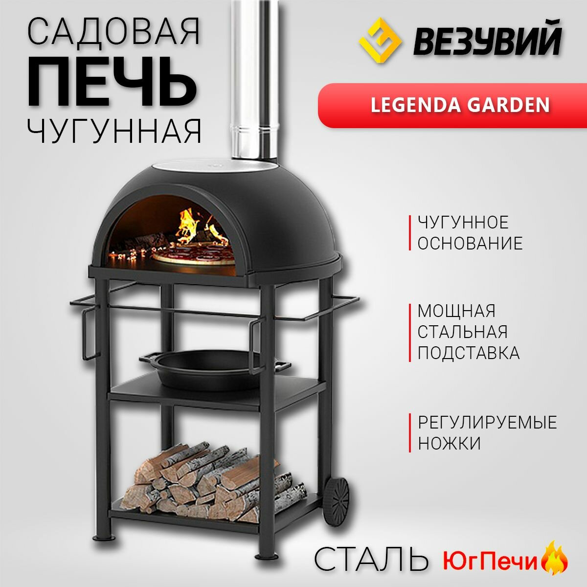 Купить Садовая чугунная печь LEGENDA GARDEN (с чугунным основанием) на подставке с доставкой по всей России.