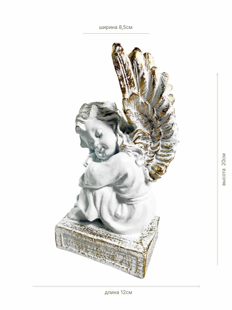Садовая фигура "Ангелочек на пьедестале", высота 20см, длина 12 см, ширина 8,5 см. Полистоун. Изделие изготовлено из полистоуна - искусственного камня, обладающего повышенной прочностью и износостойкостью, он устойчив к воздействию влаги и ультрафиолетовых лучей. Благодаря широким возможностям передачи тончайших деталей и расстановки мельчайших акцентов, полистоун является лучшим материалом для воплощения самых смелых художественных замыслов.