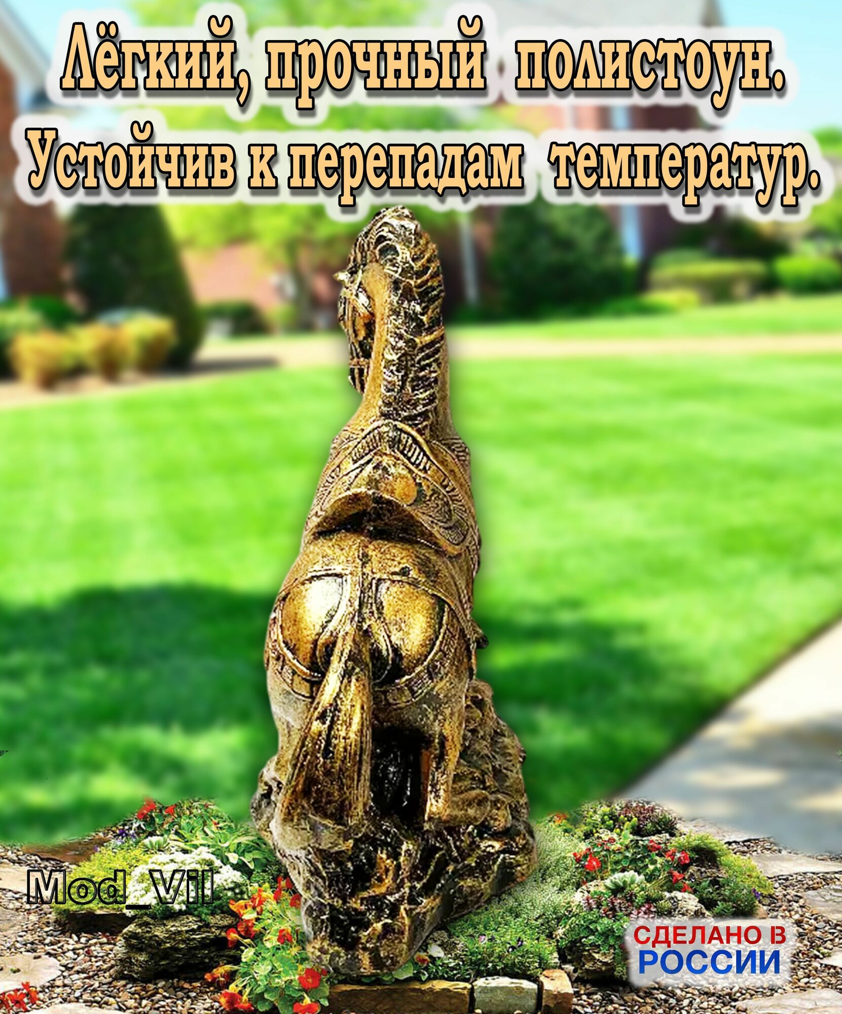 Эта садовая фигура «Конь» станет идеальным украшением для вашей дачи или огорода. Она прекрасно впишется в любой ландшафтный декор и добавит изюминку вашему двору, клумбам или пруду.