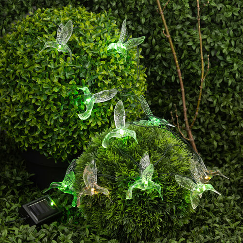 Садовая гирлянда ERASF22-26 Колибри 3.8 м от компании ЭРА станет оригинальным декором Вашего загородного участка! Этот уличный светодиодный светильник добавит атмосферу праздничности и воздушности Вашему саду - повесьте его на куст, подсветите ветви дерева или дверь в дом. Состоит из 10 прозрачных фигурок в виде колибри, подсвеченных светодиодами с разноцветным свечением. Гирлянда работает на солнечной батарее - этот тип получения энергии является наиболее экологичным, энергоемким, а также бесшумным. Питание происходит во включенном режиме, днем, а с наступлением ночи гирлянда автоматически включается и радует Вас до 8 часов своим свечением. 2 режима - постоянный и мигающий - можете менять под настроение. Садовый светильник можно оставлять на улице в непогоду, благодаря высокой степени пыле- и влагозащиты IP44. Уличная гирлянда на солнечной батарее от бренда ЭРА - выигрышный вариант для украшения территории сада.