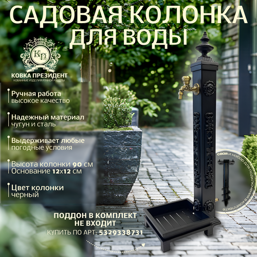Кованая колонка ручной работы - элегантный и функциональный уличный декор для территории у дома. Станет настоящим украшением для ландшафта на даче и подчеркнет ваш изысканный вкус. Изготовлена из надежного и качественного материала - чугуна и стали, отличающихся прочностью и долговечностью, способных выдерживать любые погодные условия. Изделие прослужит вам долгие годы и не потеряет своего первоначального облика. Аксессуар прост в установке и обслуживании. Не потребуется никаких специальных навыков или инструментов. Выберите удобное место, закрепите и подключите к водопроводной системе. На латунном кране встроен переходник, к которому можно легко присоединить шланг для полива, быстро наполнить водой контейнеры, канистры и полить растения, что значительно упростит уход за садовым участком или огородом. Предлагаем стильный дизайн в сером, коричневом, графитовом цвете или в оттенке слоновая кость, подходящих к классическому или современному стилю. Товар из металла - идеальный подарок для близких и друзей. Не упустите возможность превратить сад в райский уголок и наслаждаться удобством, красотой и гармонией каждый день!