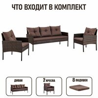 Уход за этой мебелью не требует много усилий: просто протирайте поверхность влажной тканью. Искусственный ротанг не боится дождя, солнца и других внешних воздействий, что делает этот комплект идеальным выбором для дачных беседок, террас или балконов.