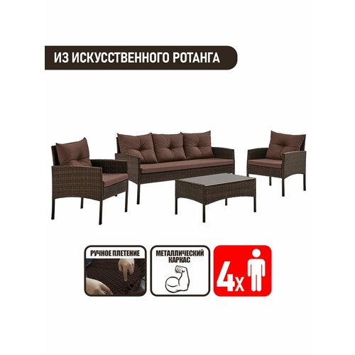 Представляем вашему вниманию стильный комплект садовой мебели из искусственного ротанга Фьорд классик в шоколадном цвете. Эта мебель станет идеальным решением для вашего дачного участка, подарив комфорт и уют вне зависимости от времени года. Набор включает в себя все необходимое для создания комфортного уголка для отдыха или встреч с друзьями.