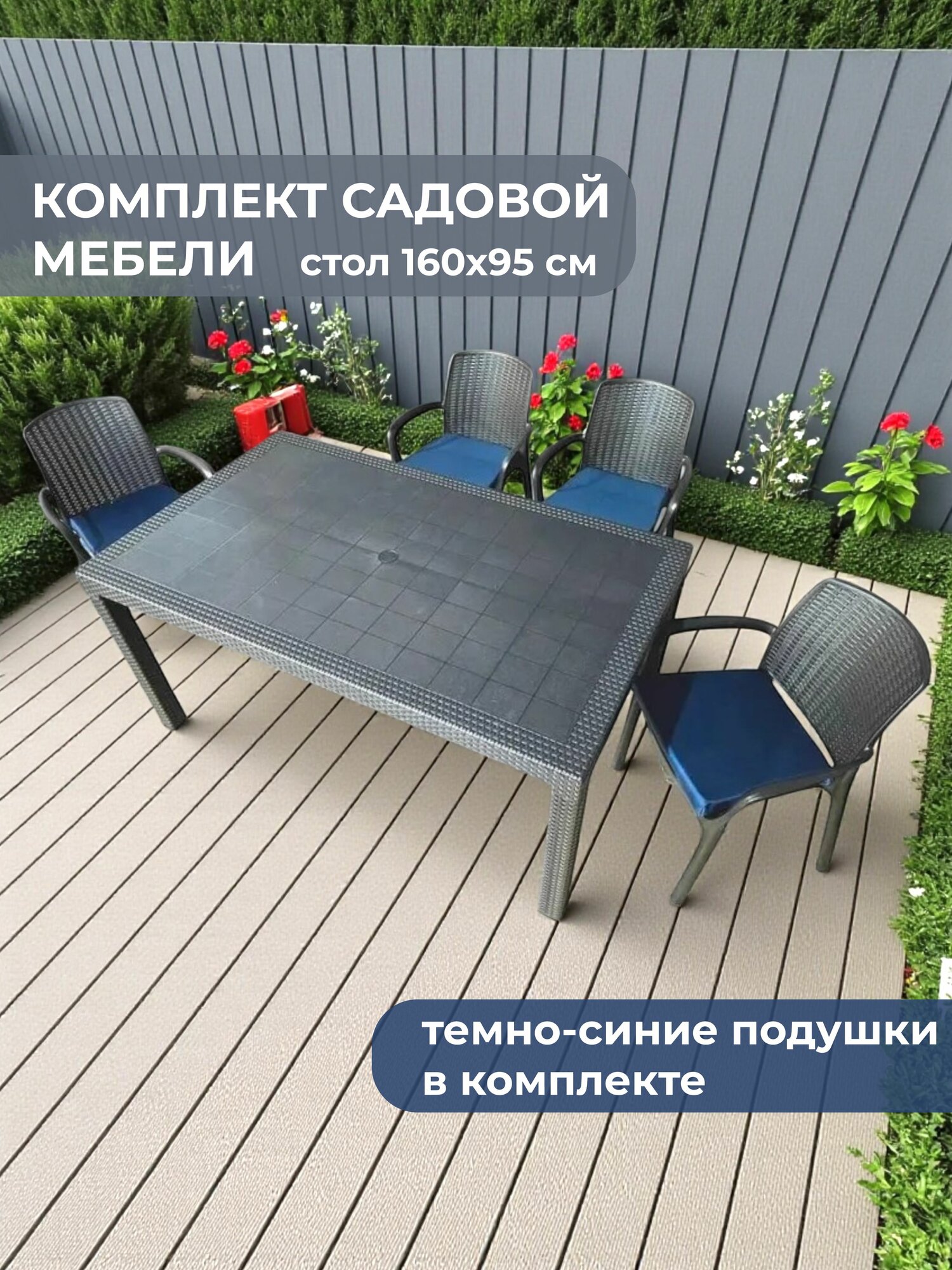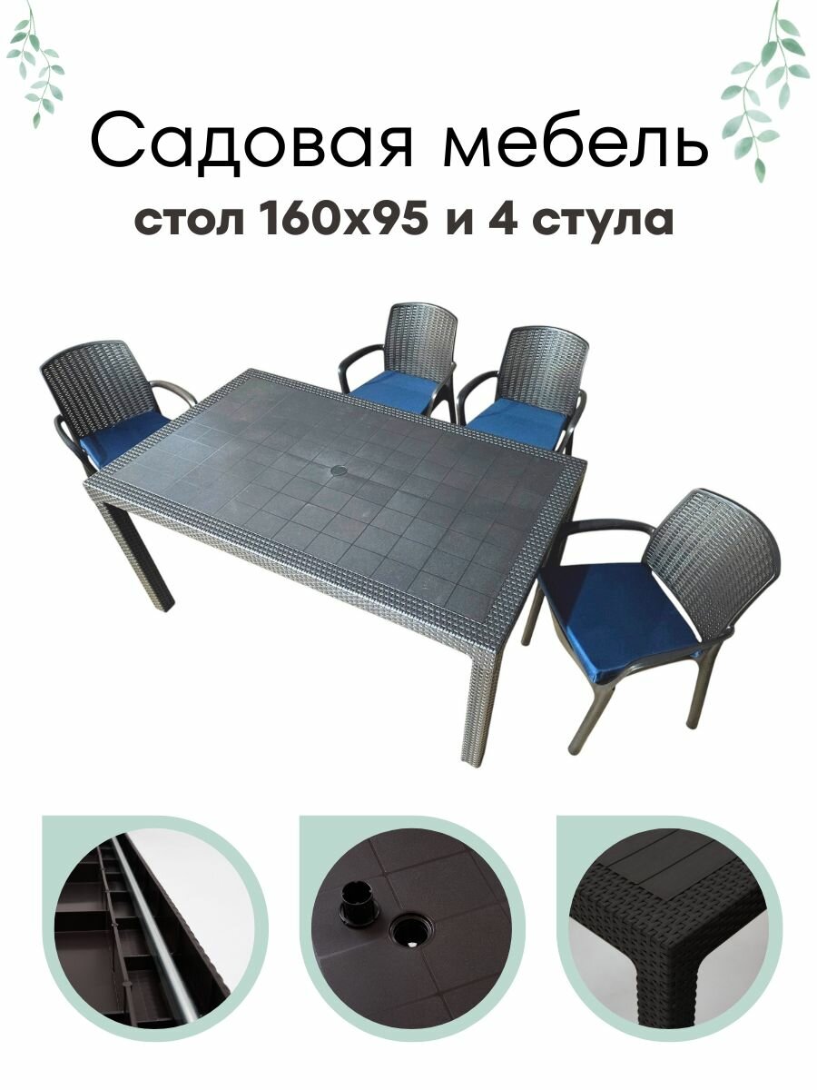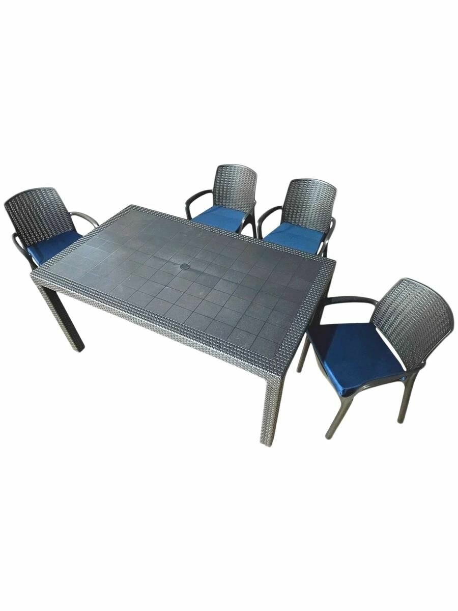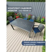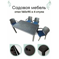 Садовая мебель HomlyGreen, комплект стол большой прямоугольный на 4 персоны 160х95х75, 4 стула, цвет венге, с темно-синими подушками: сравнение цен, характеристики, фото, актуальное наличие и цены.