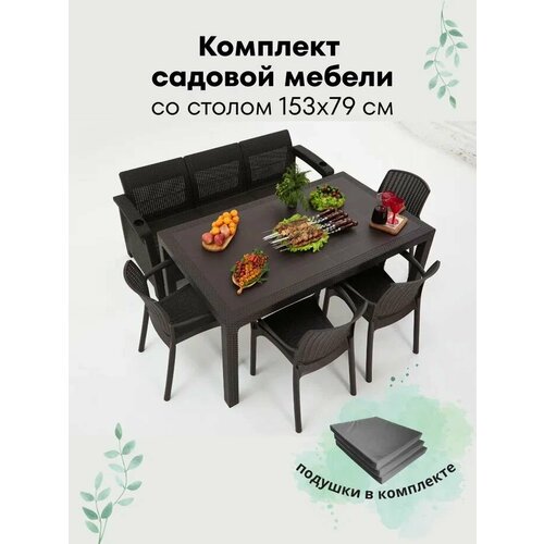 Садовая мебель. Комплект HomlyGreen 3+4стула+обеденный стол 153х79, с комплектом серых подушек: сравнение цен, характеристики, фото, актуальное наличие и цены.