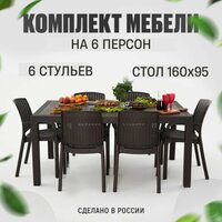Купить Садовая мебель. Набор HomlyGreen, стол большой прямоугольный на 6 персон 160х95х75, 6 стульев, цвет венге. с доставкой по всей России.
