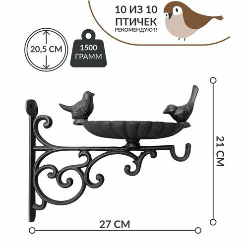 Материал: Кормушка для птиц изготовлена из высококачественного и прочного чугуна.