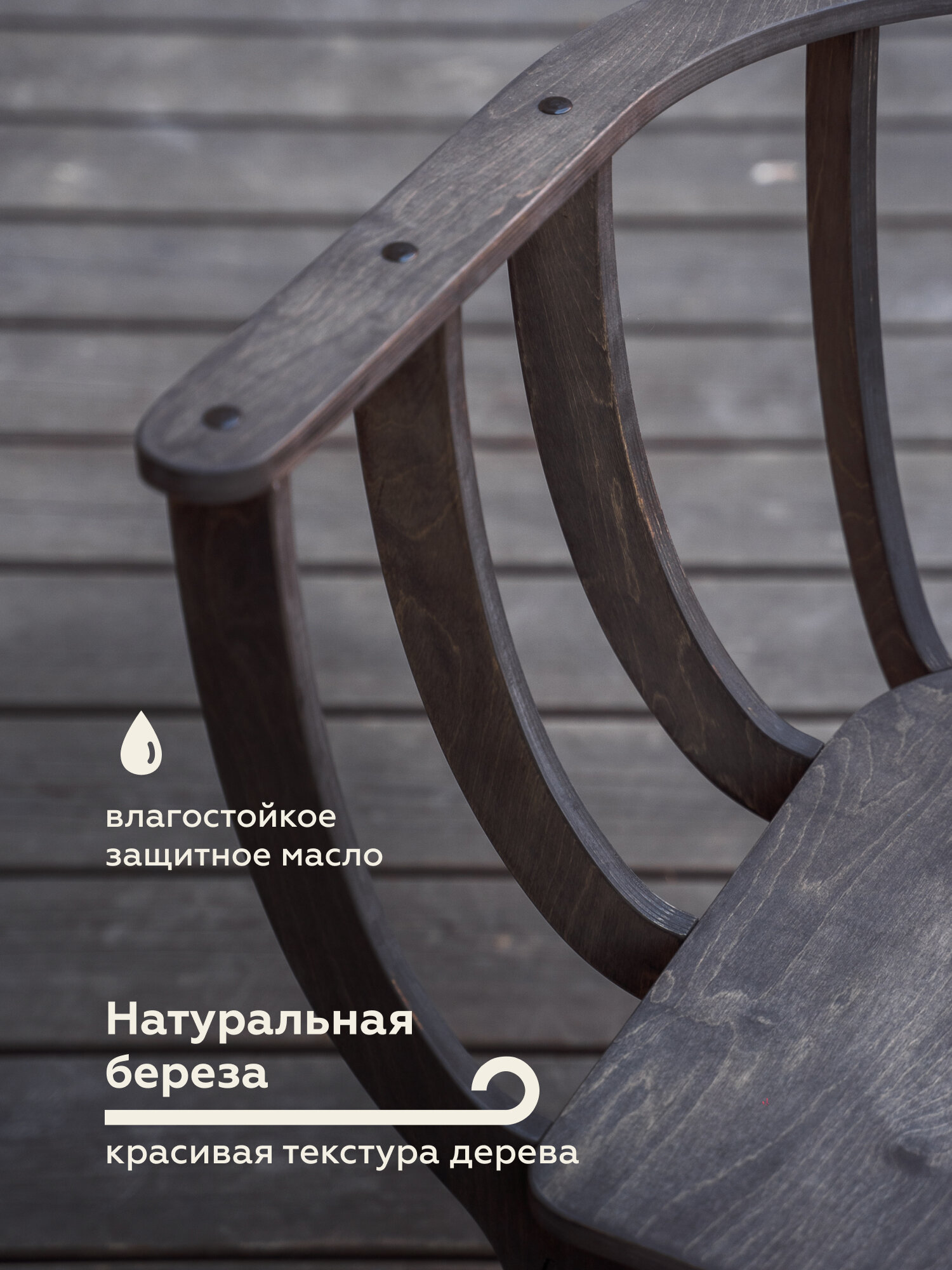 Деревянные подлокотники обеспечивают дополнительную поддержку и комфорт во время отдыха, а влагостойкость материала каркаса позволяет использовать кресло даже в условиях повышенной влажности.