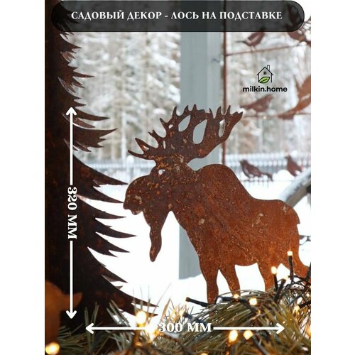 Садовое украшение Лось на подставке - это прекрасный вариант оформления к любому другому торжеству, а также отличное дополнение интерьера и садового декора. Благодаря эффекту ржавчины идеально впишется в абсолютно любые композиции, а в сочетании с елочным массивом смотрится невероятно эффектно. Минималистичный, ажурный и довольно весомый, и очень стильный элемент декора. В детальной прорисовке изделия безошибочно угадывается не только персонаж, но и мелкие нюансы их аксессуаров. Все изделия произведены из высококачественной стали, которая искусственным образом состарена, которой не страшны никакие погодные условия. Эффект винтажа придаёт изделию определённый цвет и фактуру ржавчины, создаёт визуально натуральный внешний вид, фигурки будут радовать Вас не один год! Они не выгорают на солнце, не облазят под воздействием солнечных лучей и осадков, им не страшны никакие погодные условия.