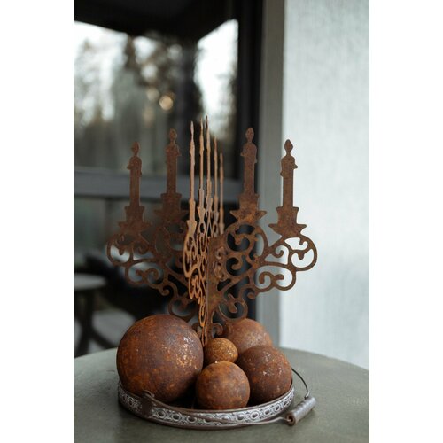 Внезесонный, идеально сочетается в настольных композициях как с живыми цветами, так и с осенними из сухоцветов и натуральных материалов типа мха, камней, еловых веток и шишек и тп. Можно использовать в рамках клумб, если подобрать подходящий цветочный ансамбль по соседству. Можно использовать как на улице, террасе, так и внутри дома. Шары выполнены из качественного железа. Они прослужат Вам многие годы. Не боится погодных условий и перепадов температур. Благодаря эффекту ржавчины идеально впишется в абсолютно любые композиции, а в сочетании с деревом, бетоном и зеленью смотрится невероятно эффектно.
