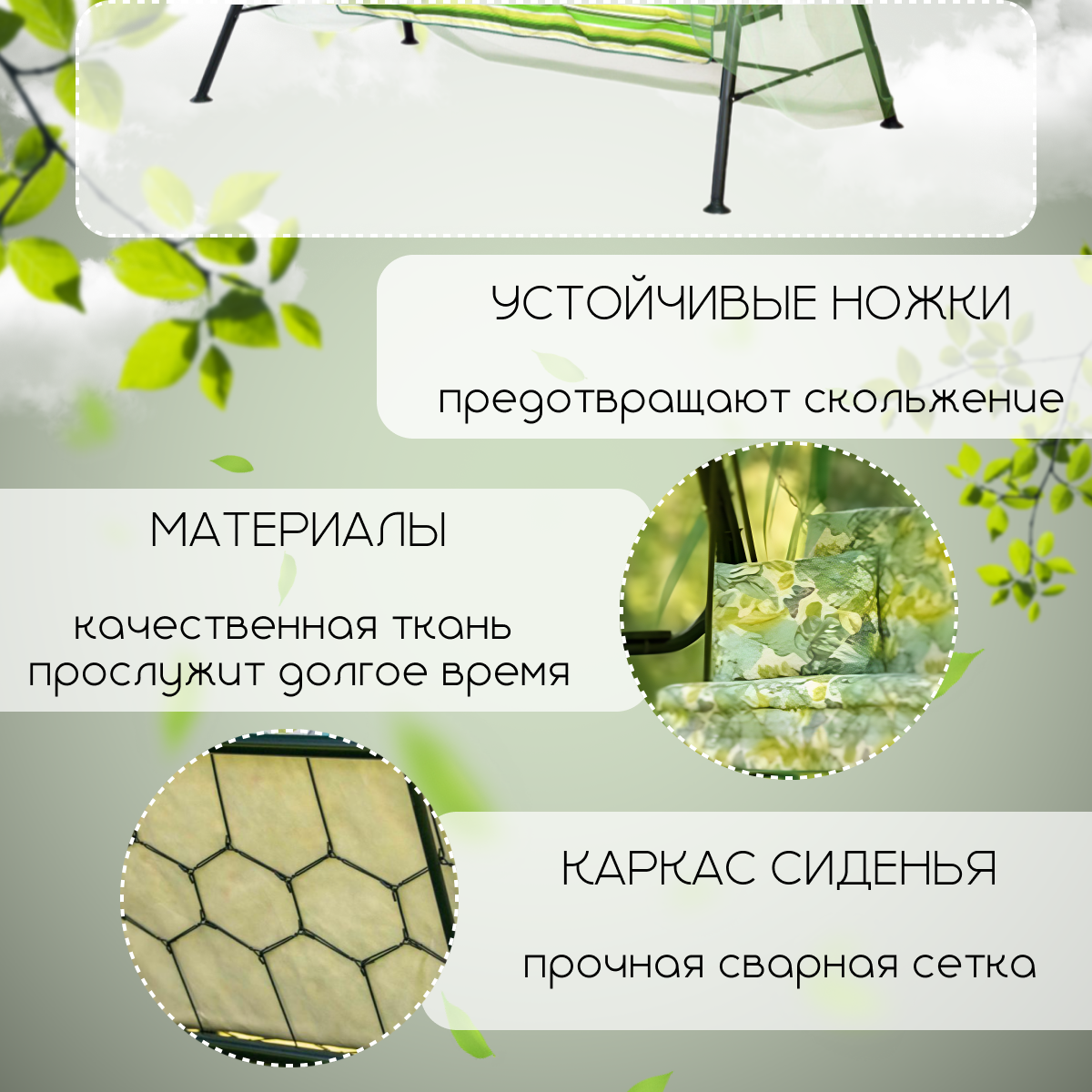 регулируемая спинка, Москитная сетка, Подвесная конструкция, С подушками