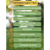 Садовые колышки - это садово-огородные подпорки, используемые с целью обеспечения комфортных условий для роста насаждений. Способствуют увеличению плодородности. Поддерживают хрупкие стебли домашних цветов и различных уличных растений. Колышки садовые дают дополнительную опору в нижней части ограждения. Композитные колья для садовых растений — это недорогое и долговечное изделие для поддержки растений на даче и в саду. Садовый колышек сможет прослужить вам до 50 лет. Срок службы деревянных опор, даже если они подвергаются специальной пропитке, составит 1-2 года. Колышки для растений можно использовать многократно. Окрашивание опор для растений может выполнять навигационную функцию, когда колышки определенного цвета поддерживают различные сорта растений. Колышки из композитной арматуры, весят в 8-9 раз меньше чем металлический аналог, также они в 2-3 раза легче, чем деревянные. Колья для подвязки позволяют с легкостью делать конструкции в виде арочных, сетчатых, пирамидальных опор для растений. Монтаж таких конструкций, с применением нейлоновых хомутов, занимает очень малый промежуток времени. Композитные опоры это новейший современный и экологически чистый материал который имеет широкое применение для сада и огорода. В жизненном цикле растения позволяет ему естественным образом изгибаться под действием ветра. При этом исключаются нагрузки на стебель штамба в местах подвязки растения к опоре. Подвязка малины увеличивает урожайность в среднем на 20% за счет предотвращения гниения и формирования растениями большего количества соцветий, такой колышек применяются огородниками и садоводами для поддержки высокорослых и плодовых растений. И служат надежной опорой и защищают их от ветра и сломов. Арматура стеклопластиковая - это надежные опоры для подвязывания виноградников, кустов малины, крыжовника. Кустодержатель пластиковый идеально подходят для использования в саду, на даче или в огороде.